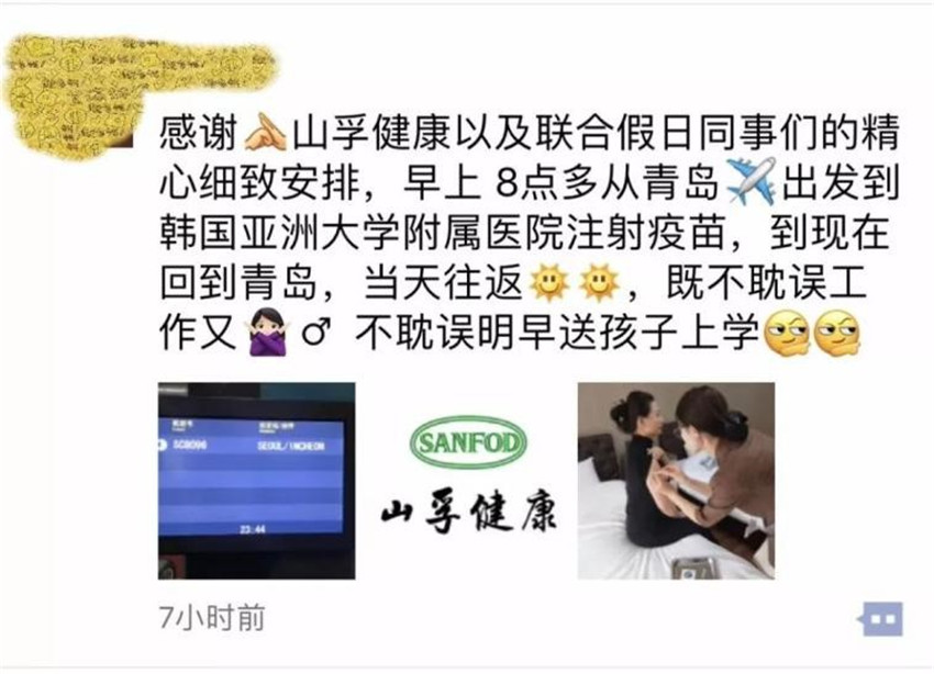 爲了(le)保證廣大(dà)客戶的利益,山孚健康的管理(lǐ)層身先士卒,充當了(le)“小(xiǎo)白(bái)鼠”的角色。前往韓國亞洲醫(yī)院考察,并接受注射了(le)HPV宮頸癌疫苗的第2針。